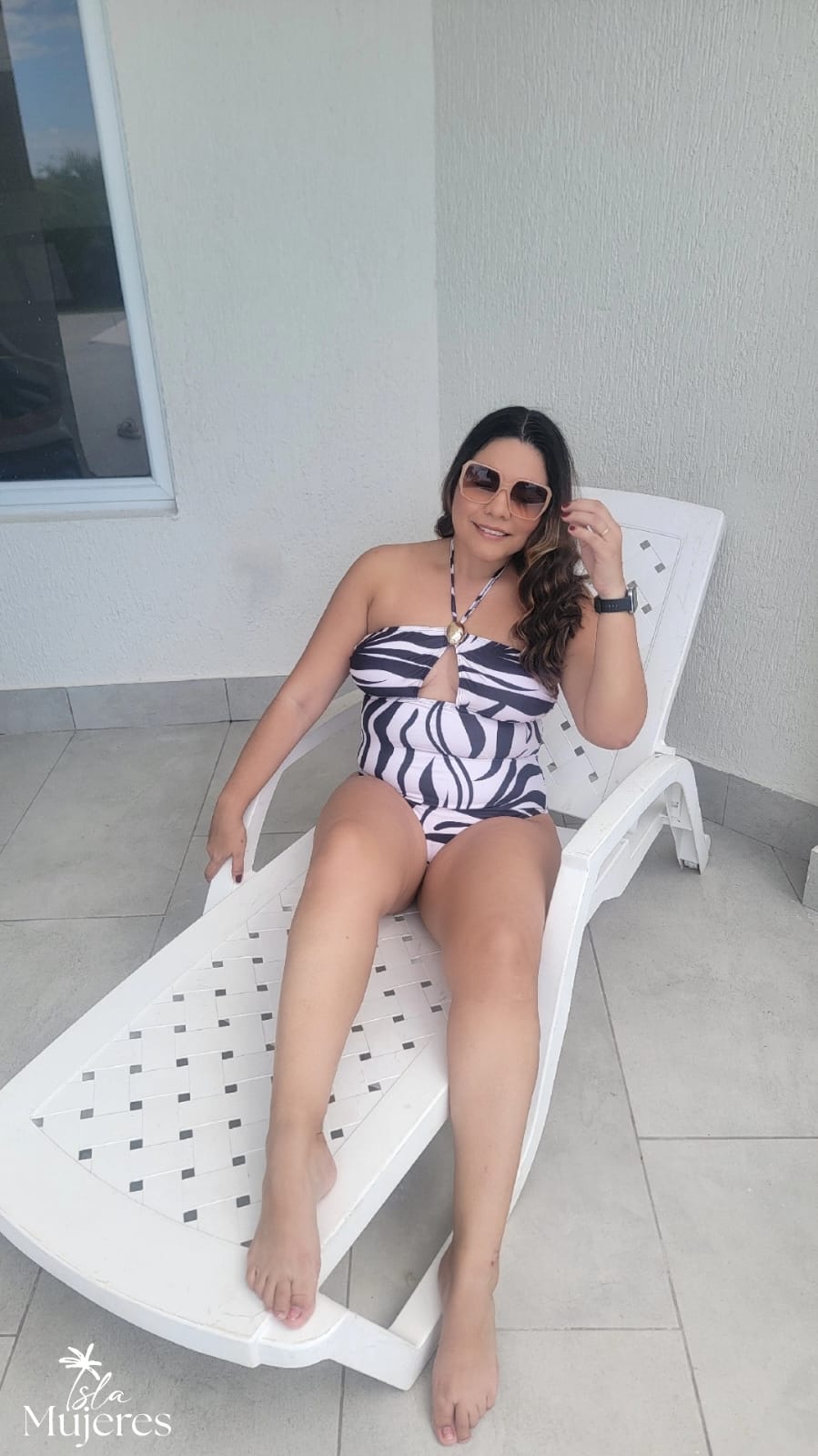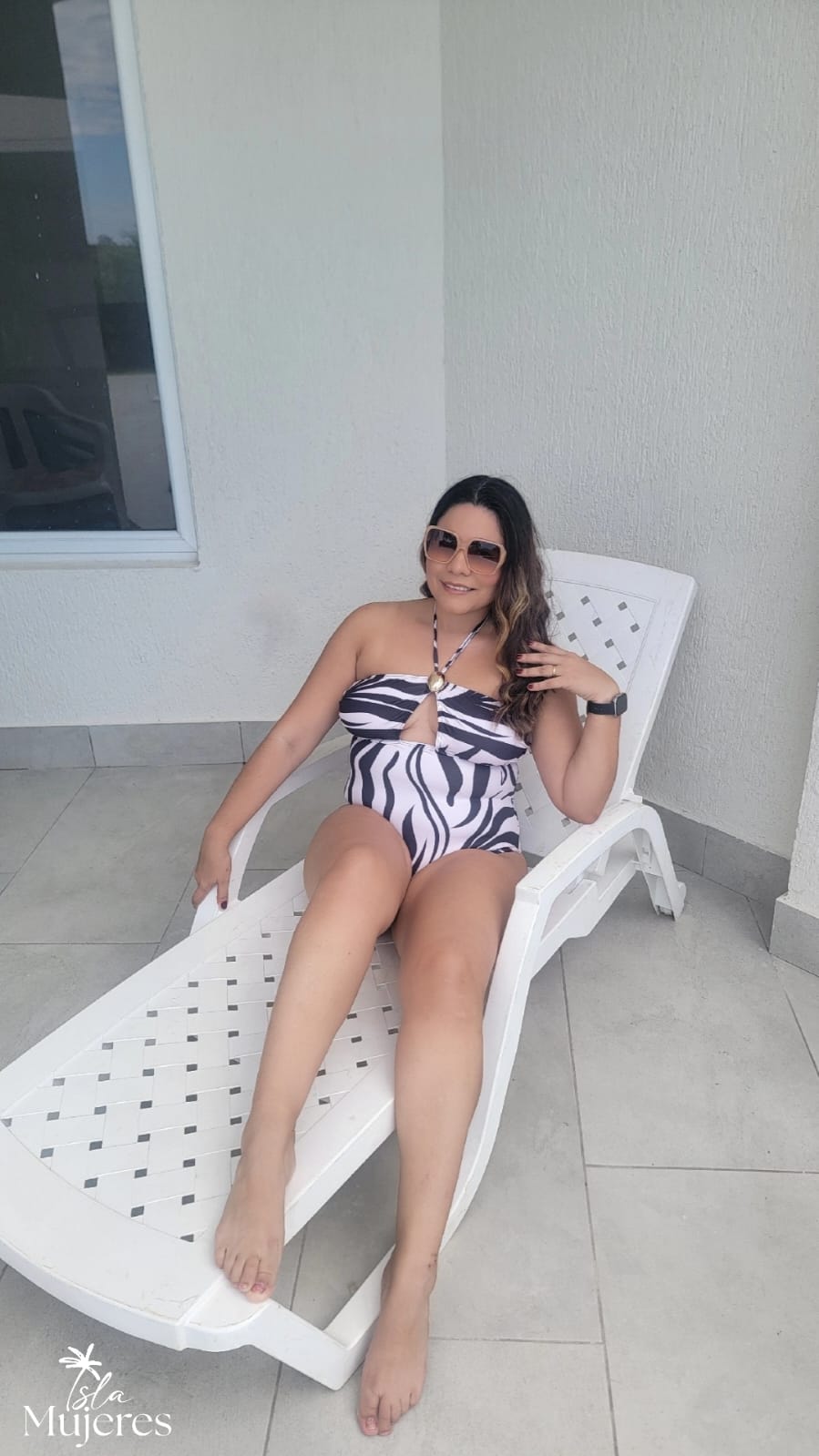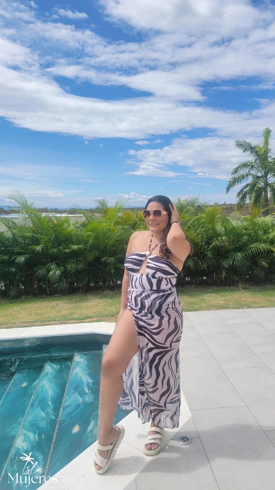 Vestido de Baño Enterizo Blanco con Negro, incluye salida de baño